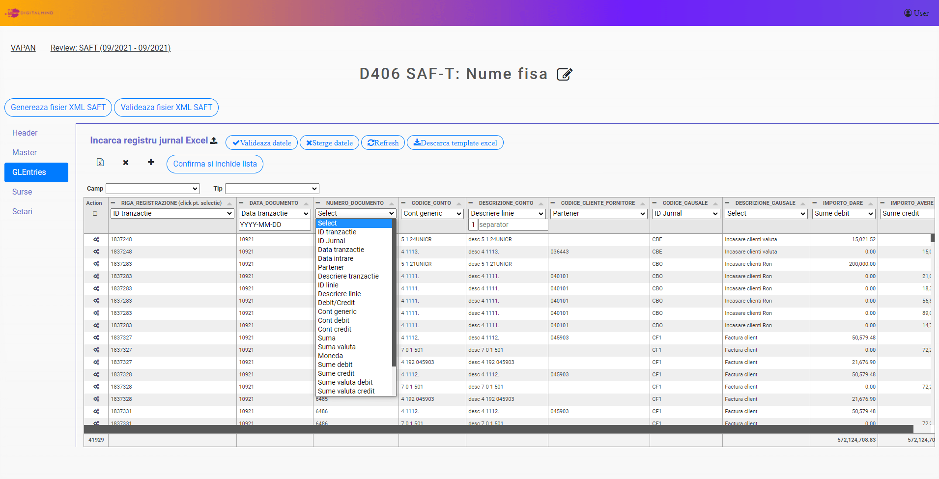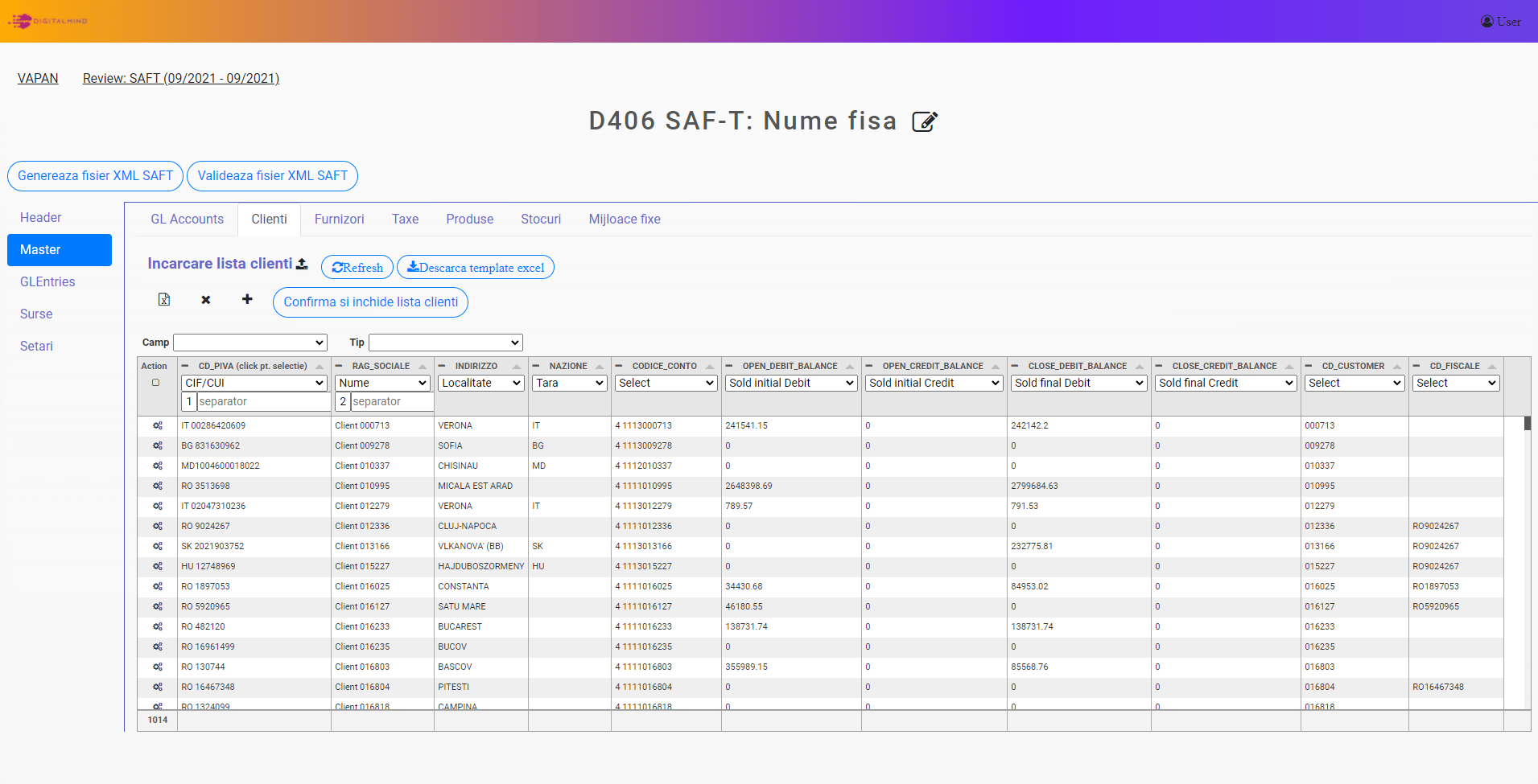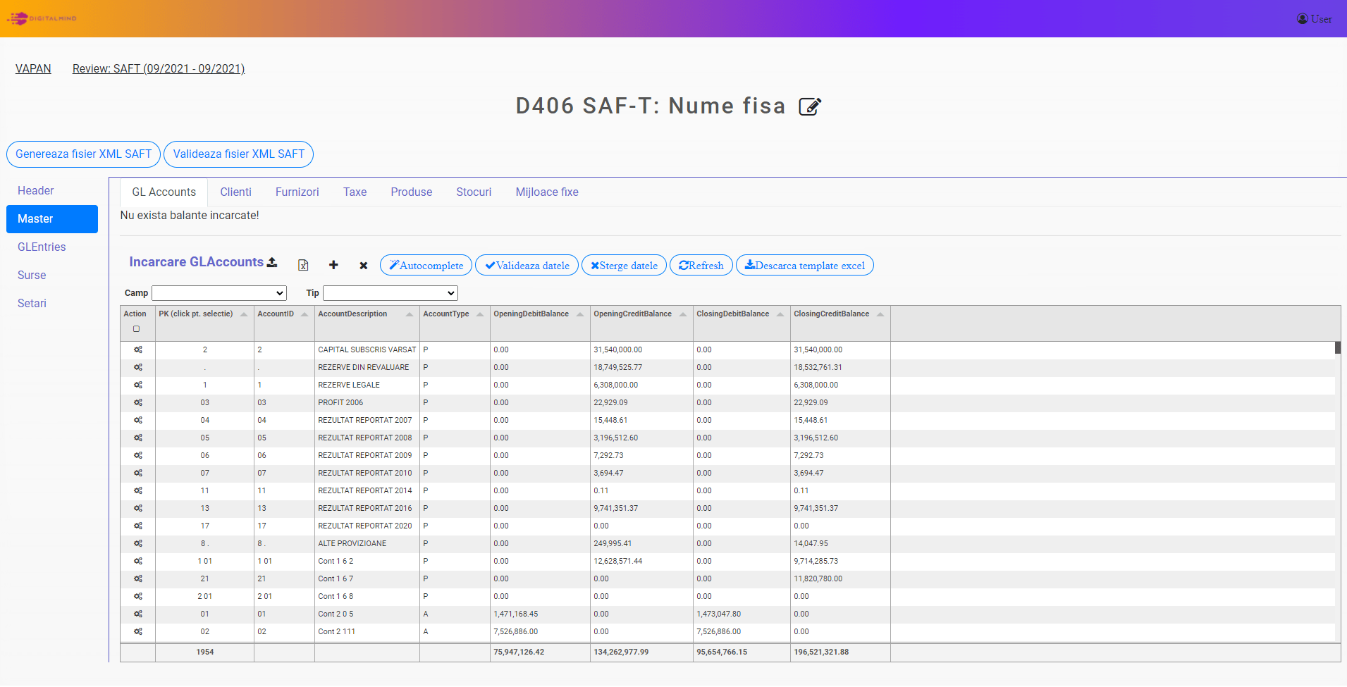 - Generarea fișierului XML în format SAF-T de către sistemul informatic propriu al contribuabilului